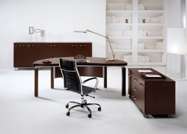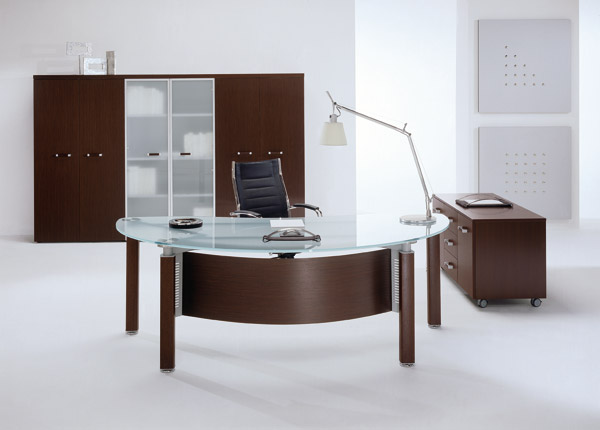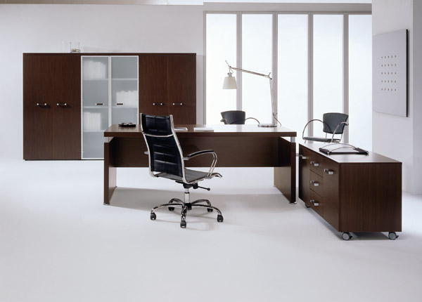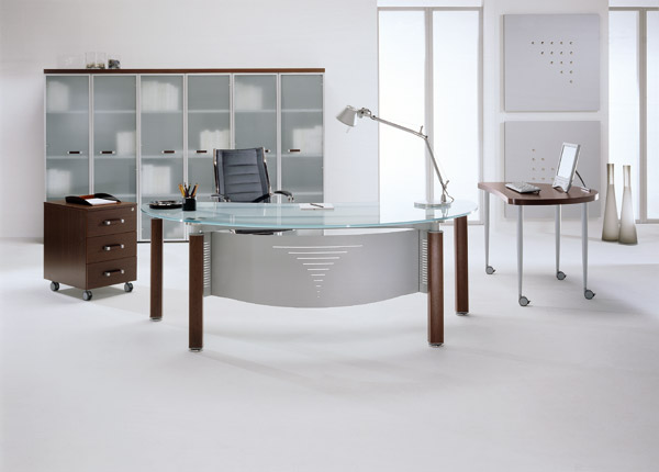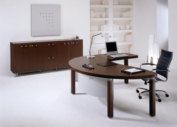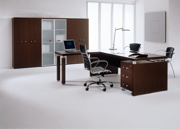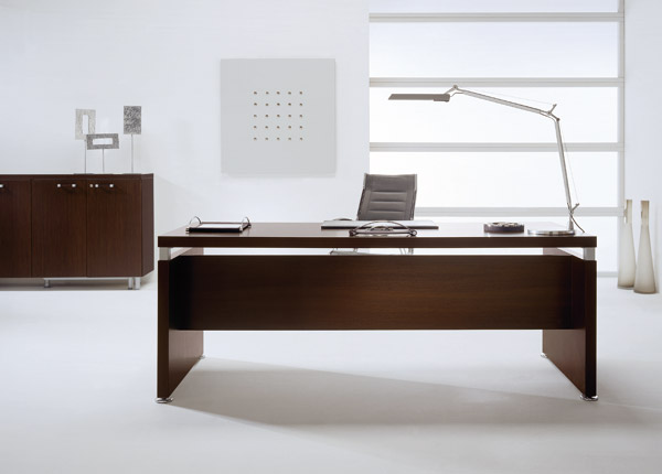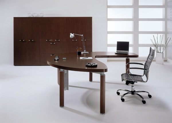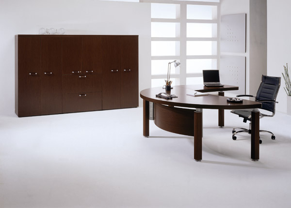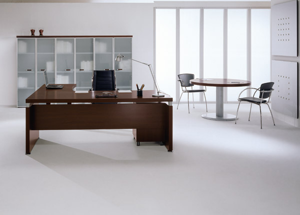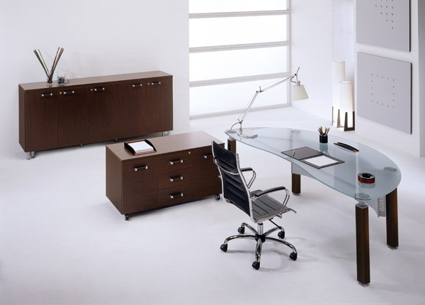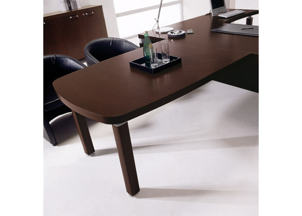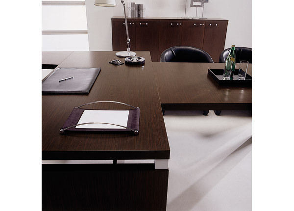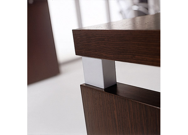 Office Desks > LeaderWorktops: desks, extensions covered with a wooden essence, thick mm.51, or in glazed glass mm.12. Structures: columns, covered with wood, fixed to an under top in steel tubes, or panel sides covered with a wooden essence, thick mm.51 and mm.18 for the front panel. Chest of drawers and service cabinet: in coated board mm.18 for the chest, side panels and tops covered with a wooden essence, thick mm.18. Bookcases: in coated board mm.18 for the structure and the back panel, mm.25 for shelves top covered with a wooden essence, thick mm.38. Doors: doors covered with a wooden essence thick mm.18 or in tempered glazed glass thick mm.5 with an aluminium frame.View Catalogue View Catalogue Specifications |