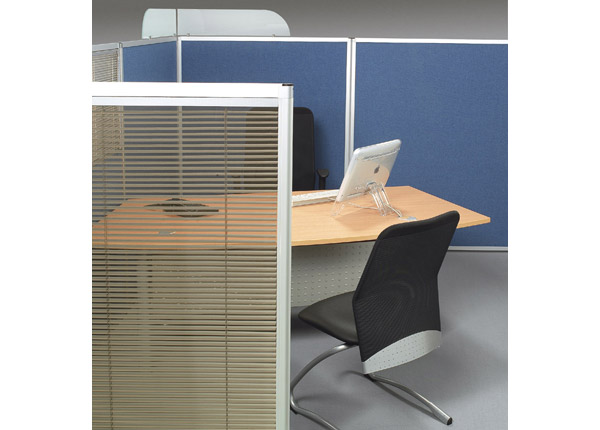 Partitions > PartitionsMetal structure, predisposed on two sides for the fixing of the bases, panels, work tops, shelves, document holders and tops reception. Plinths in metal steel. Modular panel available in different height, in melamine mm. 14, in painted steel plate, in transparent tempered glass mm. 3 with aluminium frame. Upper terminal profiles and uprights in extruded aluminium, bounded by PVC connections. Corner item sections in transparent methacrylate 5 mm, top in curved profile in MDF lacquered, frame and mock-frame in extruded aluminium profiles, transparent methacrylate panel in 8mm. Worktops, terminals and corner in melamine 25 mm.