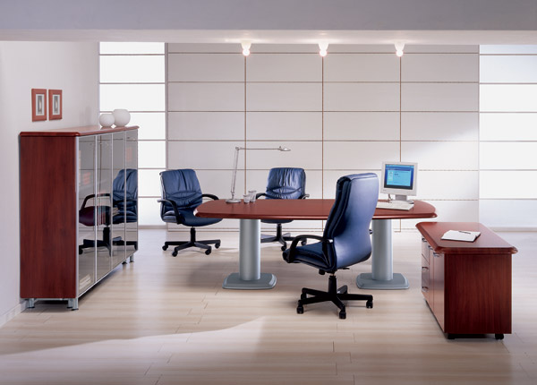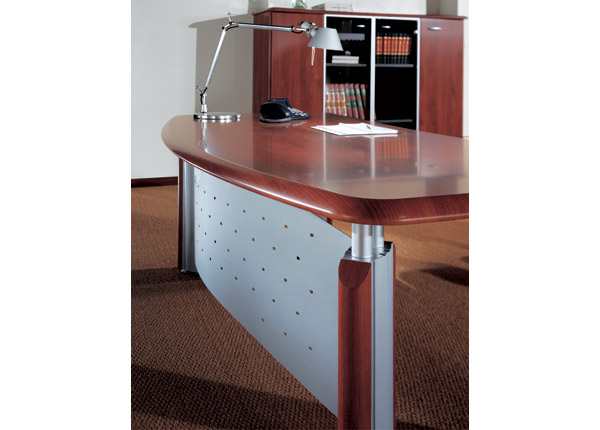 Office Desks > PresidentWorktops: desks, extensions, tops, bookcases are in 38 mm thick mdf (medium density fibreboard) polymeric coated, or 15 mm thick toughened glazed glass. Structures: metal ovals columns with vertical blocks polymeric coated, or side panels in mdf polymeric coated or side covered with a steel sheet, vertical solid polymeric coated, or side panels covered with hpl (high pressure plastic laminate). Chest of drawers and service table: chests in coated board mm.18, top mm.38 and front drawers mm.18 in mdf covered with polymeric. Bookcases: in coated board mm.18 for the structure and the back panel, mm 25 for shelves, top mm 30 in mdf covered with polymeric. Doors: in mdf covered with polymeric mm.18, or in tempered glazed glass mm.5 with aluminium columns.View Catalogue View Catalogue Specifications |